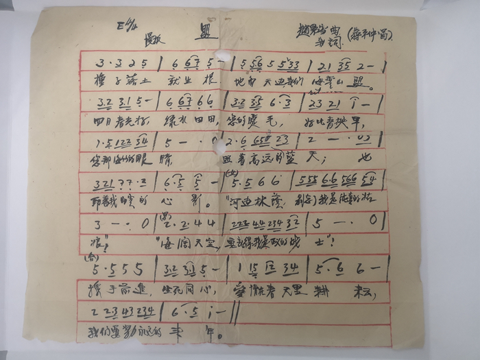“種子落土就生根,地角天邊,我們就海誓山盟”“海闊天空,要記得我是正義的戰(zhàn)士”“攜手前進(jìn),生死同心,愛(ài)情在春天里耕耘”……一張泛黃的稿紙上寫(xiě)滿(mǎn)了革命激情。這是二十世紀(jì)三四十年代,由趙良璋和薛介民兩位烈士共同創(chuàng)作的革命歌曲《盟》。去年3月1日,薛介民的后人將這份珍貴的手稿捐贈(zèng)給了雨花臺(tái)烈士紀(jì)念館。