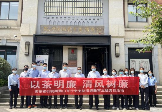 為進一步筑牢黨員干部反腐倡廉的思想道德防線,豐富支行黨支部黨風廉政建設教育形式,日前,南京銀行杭州蕭山支行黨支部組織全體黨員干部、團員一同參觀了杭州西湖龍井茶博物館,開展“以茶明廉,清風樹廉”茶廉文化主題黨日活動。
