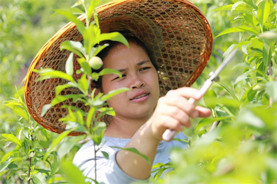 “今年是一個(gè)豐收年,我們正在給果園松土和縮果。等下個(gè)月底成熟了,歡迎大家來吃甜蜜蜜的黃桃?!睎|安縣大廟口樂福村,成片的黃桃進(jìn)入掛果期,唐云云站在“云端”,提前向網(wǎng)友發(fā)出豐收的邀請。
