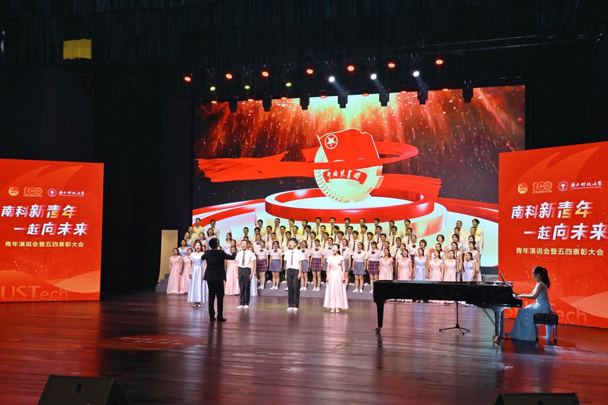 “南科新青年·一起向未來”青年演說會(huì)現(xiàn)場(chǎng)合唱。南科大供圖