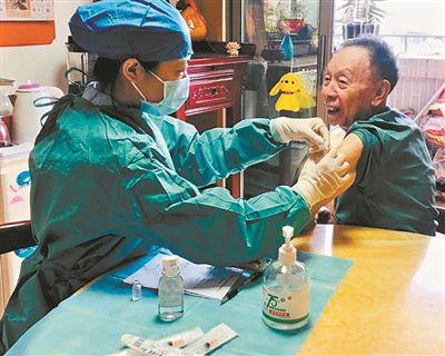 當天上午,86歲高齡的黃俊英精神矍鑠,圍繞著粵語相聲聊得起勁。一旁的醫(yī)護人員嚴格按照接種流程,對他的身體健康狀況進行綜合檢查和認真評估,確認其健康狀況穩(wěn)定、無相關禁忌癥,并征得其同意后,為其接種疫苗。