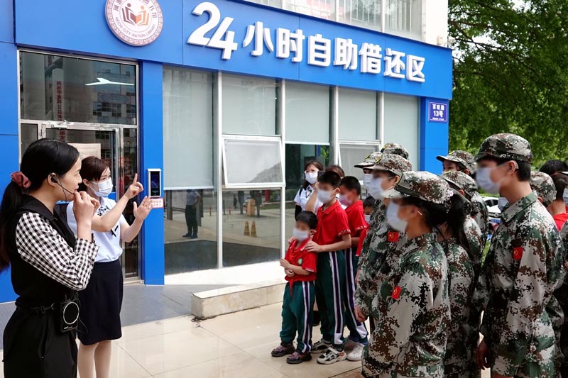 廣西河池市金城江區(qū)特殊教育學(xué)校的孩子們在參觀圖書24小時自助借還區(qū)。高東風(fēng)攝