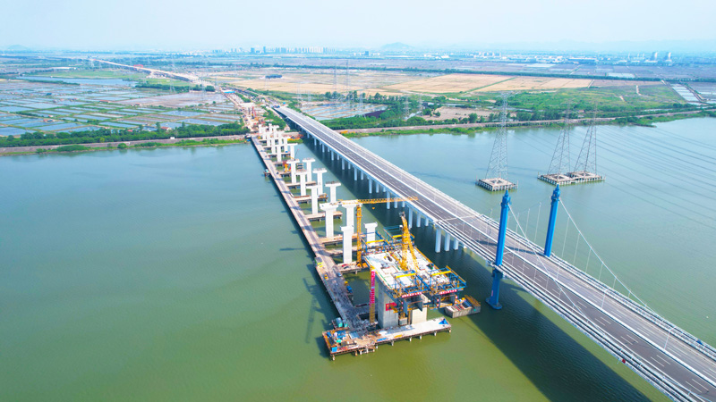 浙江杭紹甬高速杭紹段曹娥江特大橋墩柱全部澆筑完成