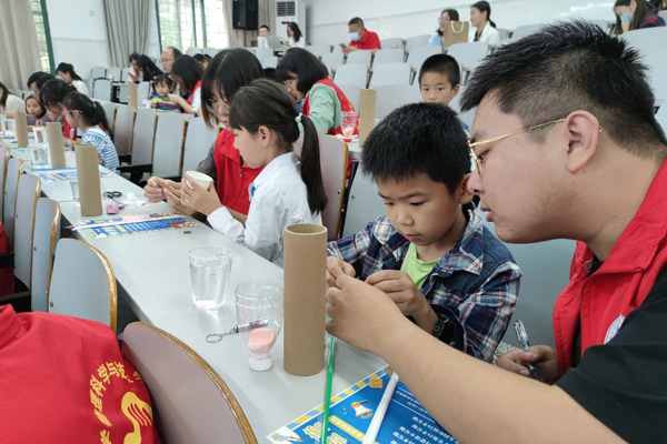 志愿者教孩子動手做科普。西南大學供圖