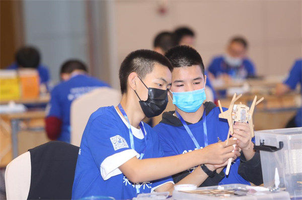 未來(lái)太空車(chē)復(fù)賽由現(xiàn)場(chǎng)制作和障礙物攀爬兩部分組成,參賽隊(duì)伍需在規(guī)定時(shí)間內(nèi)完成太空車(chē)制作并通過(guò)尺寸核驗(yàn),最后通過(guò)三輪障礙物攀爬比賽決出勝負(fù)。比賽中,參賽隊(duì)伍以問(wèn)題為導(dǎo)向,在充分考慮“太空車(chē)”爬行動(dòng)力支撐、速度、阻力、摩擦力等制約因素下,進(jìn)行裝置的拼裝及改裝,隨著“太空車(chē)”一個(gè)接一個(gè)地翻越過(guò)障礙物,現(xiàn)場(chǎng)同學(xué)們紛紛送上喝彩。