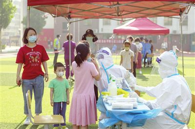 6月5日,天津市有序開展全員核酸檢測。圖為南開區(qū)中心小學(xué)核酸檢測采樣點(diǎn)現(xiàn)場。 記者 胡凌云 通訊員 王英浩 攝
