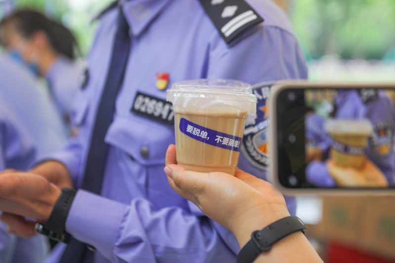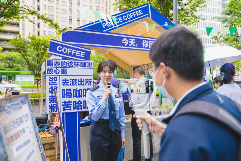 同時(shí),隨著“坐在警務(wù)站里喝咖啡”話題持續(xù)火爆,公安民警將踐行“三能”要求與參與創(chuàng)意市集相結(jié)合,創(chuàng)新推出了“蜀黍請你喝咖啡 反詐知識帶回家”快閃活動(dòng),以更有活力、更接地氣、更潮流入時(shí)的方式,讓年輕群眾在學(xué)習(xí)知識的過程中,還能品嘗到香醇可口的咖啡。