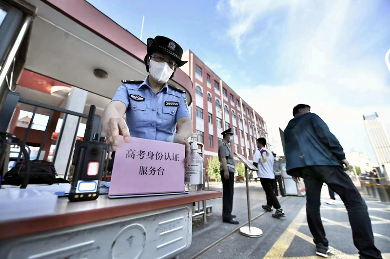 天津市公安局河?xùn)|分局在考場外設(shè)置“高考身份認(rèn)證服務(wù)臺”。河?xùn)|區(qū)供圖