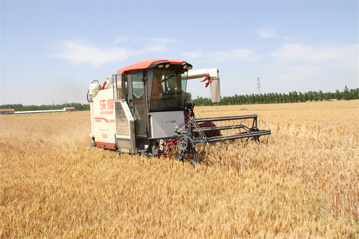 在種糧大戶呂振柏的800畝麥田里,大型收割機(jī)往來作業(yè),看見農(nóng)行工作人員的到來,老呂興奮地說起了今年小麥的產(chǎn)量收成:“今年麥子很好啊,雖然雨水有點(diǎn)少,但是有了貸款支持,澆水、施肥、打藥等管理都沒耽誤過,預(yù)計(jì)畝產(chǎn)能達(dá)到1200斤,而且價(jià)格比去年也高了,能賣個(gè)好價(jià)錢”。