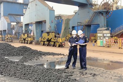 海關(guān)關(guān)員對(duì)焦炭進(jìn)行現(xiàn)場監(jiān)管。天津海關(guān)供圖