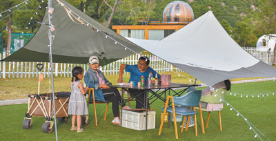 “三五好友結伴而行,喝茶賞景,好不愜意?!背虝哉f,“現在市場上有很多比較成熟的露營產品可選擇,有的只提供帳篷等設備,需要自備餐食,有的是全包,吃住游所需都準備好了,還有些個性化的產品會提供桌游、羽毛球等休閑項目?!痹隗w驗過幾次露營后,程曉正打算帶上父母一起戶外郊游。