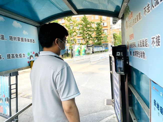 在石景山區(qū)八角中里社區(qū),記者看到原有智能門禁系統(tǒng)已完成升級,本小區(qū)居民只需在系統(tǒng)前站立一兩秒,健康寶狀態(tài)、核酸檢測時長等信息就在屏幕上顯示出來?!斑@個小區(qū)老年人比較多,查驗(yàn)健康寶、核酸證明等需要頻繁操作手機(jī),對他們來說十分不便?!鄙鐓^(qū)黨委書記李美紅介紹,小區(qū)智能門禁系統(tǒng)與“北京健康寶”信息對接后,將健康碼、核酸檢測核驗(yàn)、小區(qū)居民身份查驗(yàn)、測溫、門禁通道控制合為一體,省去人工查驗(yàn)健康寶和測溫等環(huán)節(jié),小區(qū)卡口實(shí)現(xiàn)秒開門,對老年人來說尤其便利,也提升小區(qū)疫情防控工作效率。