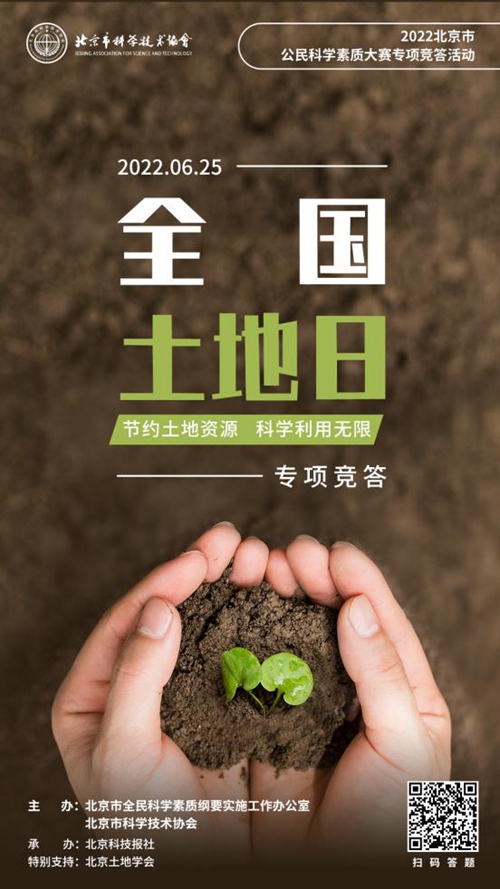 據(jù)了解,“節(jié)約土地資源 科學(xué)利用無(wú)限”專項(xiàng)競(jìng)答活動(dòng)是2022北京市公民科學(xué)素質(zhì)大賽推出的系列專項(xiàng)競(jìng)答之一。北京市公民科學(xué)素質(zhì)大賽形式多樣,聯(lián)合北京市綱要辦成員單位、市屬學(xué)會(huì)、高??茀f(xié)等開(kāi)展系列專題競(jìng)答,進(jìn)一步貫徹落實(shí)《北京市全民科學(xué)素質(zhì)行動(dòng)規(guī)劃綱要(2021—2035年)》,著力發(fā)揮“首都科普”品牌活動(dòng)的示范引領(lǐng)作用,開(kāi)創(chuàng)熱愛(ài)科學(xué)、崇尚創(chuàng)新的科學(xué)素質(zhì)建設(shè)新局面。