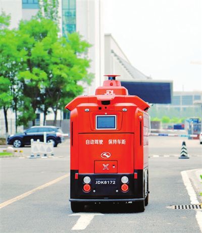 天津(西青)車(chē)聯(lián)網(wǎng)先導(dǎo)區(qū)的京東智能配送車(chē)應(yīng)用場(chǎng)景。記者 潘立峰 通訊員 袁忠清 攝