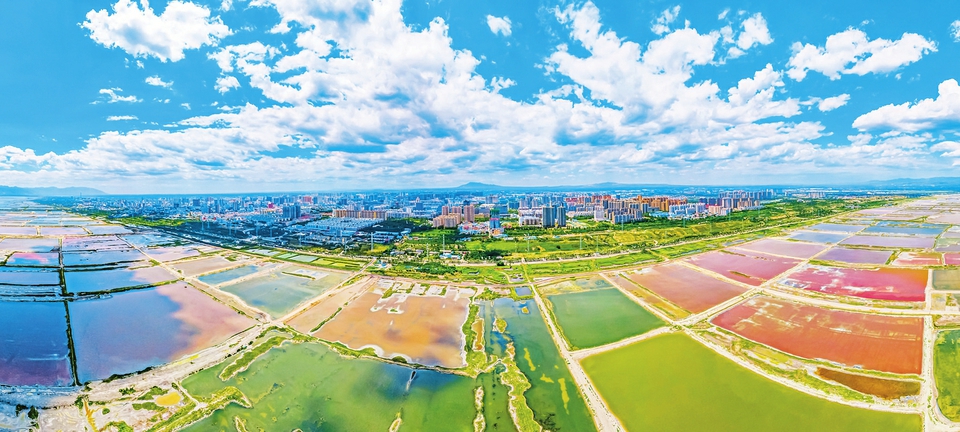 6月28日,運(yùn)城市中心城區(qū),藍(lán)天白云與七彩鹽湖交相輝映,美不勝收。近年來(lái),運(yùn)城市緊緊圍繞綠色發(fā)展理念,加強(qiáng)鹽湖生態(tài)資源的保護(hù)和修復(fù),將鹽湖打造成生物多樣的生態(tài)空間、風(fēng)光旖旎的旅游目的地、愜意舒心的居民休憩地。(陳方斌攝)