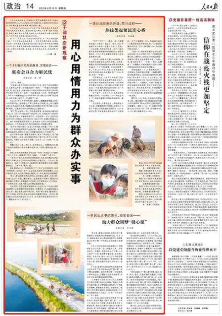 “如今,群眾的需求更加多樣化,涉及就業(yè)、教育、鄉(xiāng)風(fēng)文明、環(huán)境衛(wèi)生多個(gè)方面?!贝靼簿f,“全面推進(jìn)鄉(xiāng)村振興,要想辦法滿足群眾的需求,在最基層的行政村,召開聯(lián)席會(huì)議、工作例會(huì),廣泛聽取訴求,這是為群眾辦實(shí)事的重要舉措。”
