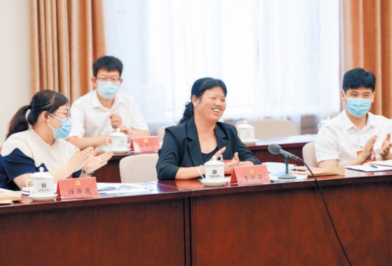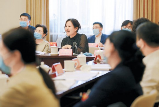 海淀代表團(tuán)會(huì)議中,張海燕代表結(jié)合黨代會(huì)報(bào)告,就中小科技企業(yè)如何留住科技人才提出建議。 本報(bào)記者 賈同軍攝