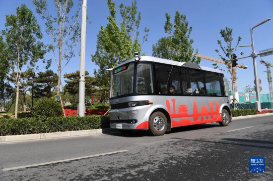 一輛無(wú)人駕駛車在雄安新區(qū)道路進(jìn)行路測(cè)(2022年5月27日攝)。新華社記者 朱旭東 攝