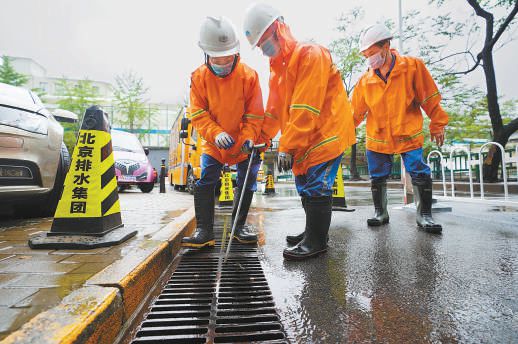 昨天9時許,在朝陽區(qū)管莊路上的一處排水口旁,兩名北京排水集團的防汛人員先用錐桶做好警戒防護,接著用鉤子鉤起雨水箅子,加速排水。在朝陽區(qū)金泰橋下凹橋區(qū),北京排水集團壩河流域分公司的工作人員早六時就到達現(xiàn)場進行值守?!斑@個點位地勢較低,短時雨量大的情況下容易造成積水,為避免影響交通,我們提前做好了準備?!爆F(xiàn)場一位工作人員說。