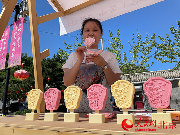 丫髻山桃花扇文創(chuàng)雪糕受到歡迎。人民網(wǎng) 尹星云攝