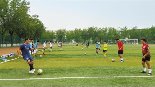 7月12日,西安郵電大學男子足球隊備戰(zhàn)省十七運會大學生組比賽訓練。 本報記者 毛毛攝
