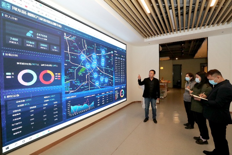 在“智聯(lián)萬家”平臺(tái)大屏幕上,有河?xùn)|區(qū)老人數(shù)量情況、低保補(bǔ)貼和居家養(yǎng)老補(bǔ)貼人數(shù)、當(dāng)前物聯(lián)設(shè)備發(fā)放總數(shù)及當(dāng)前在線數(shù)量和位置,以及當(dāng)前出現(xiàn)的異常提醒等。