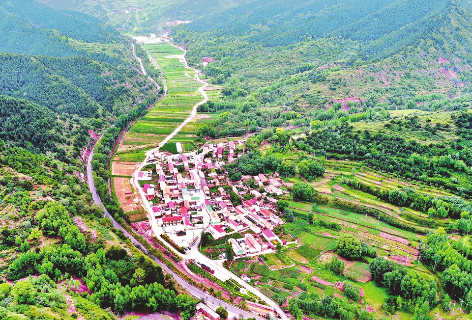 7月24日,俯瞰古交市邢家社鄉(xiāng)宋家莊村,道路蜿蜒,榛林蔥翠。近年來(lái),該村依托當(dāng)?shù)刈匀画h(huán)境優(yōu)勢(shì),以經(jīng)濟(jì)聯(lián)合社占股60%、農(nóng)民承包地入股占40%的方式經(jīng)營(yíng),實(shí)現(xiàn)大果榛子規(guī)?;?、集約化、產(chǎn)業(yè)化種植,舊日的撂荒地如今變成村民的聚寶盆。(記者劉通攝)