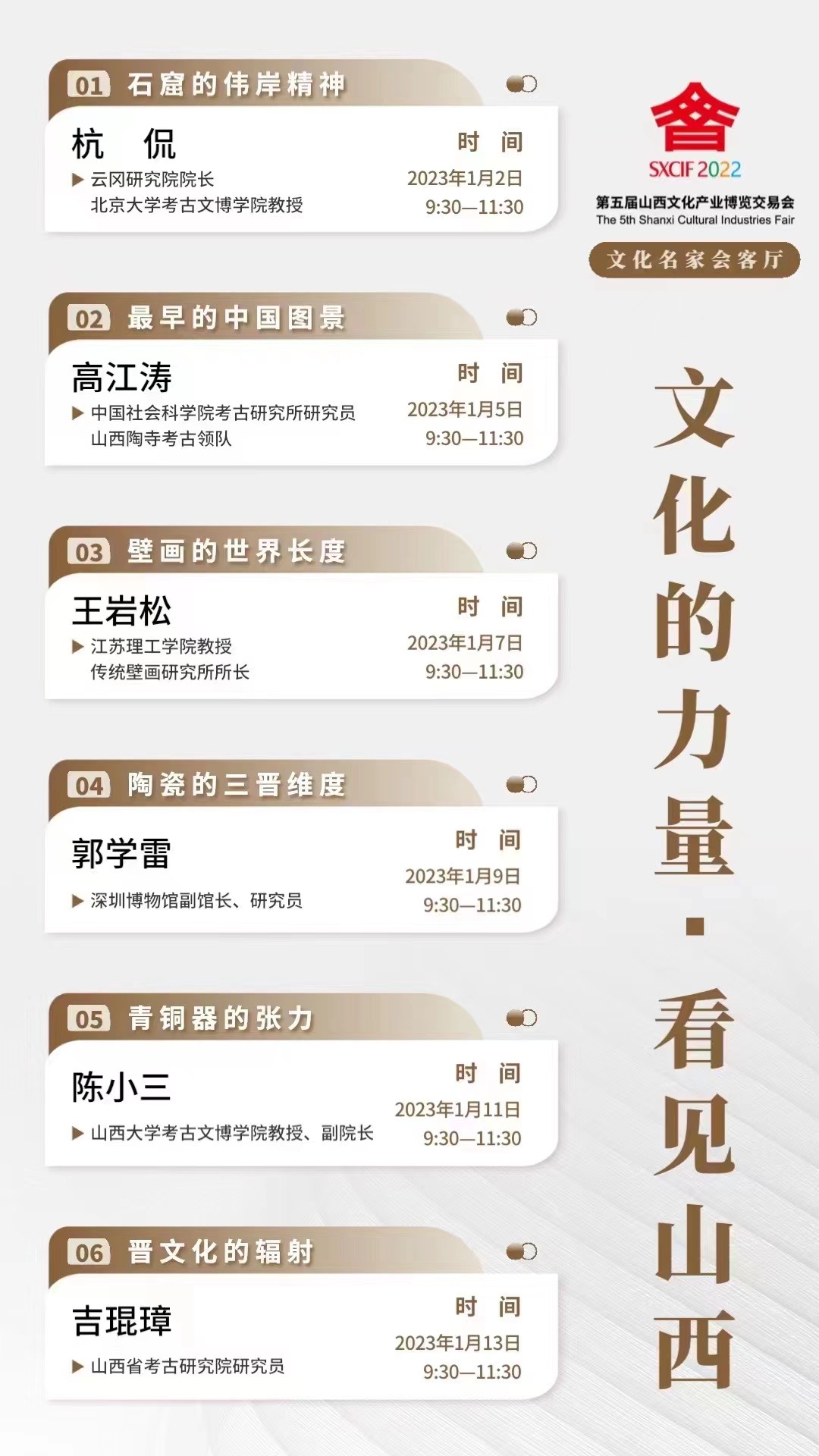 “文化名家會客廳”正式啟動時間為2023年1月2日,屆時,觀眾可以通過山西晚報·文博山西視頻號、新浪微博@山西晚報以及騰訊會議在線觀看。