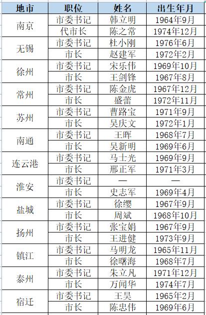 人民網(wǎng)統(tǒng)計發(fā)現(xiàn),江蘇設(shè)區(qū)市黨政主官中“70后”已達(dá)10位,占比近半。其中,蘇州、無錫、泰州三市的黨政主官均為“70后”。江蘇各市黨政主官里,目前最年輕的是出生于1976年的無錫市委書記杜小剛。