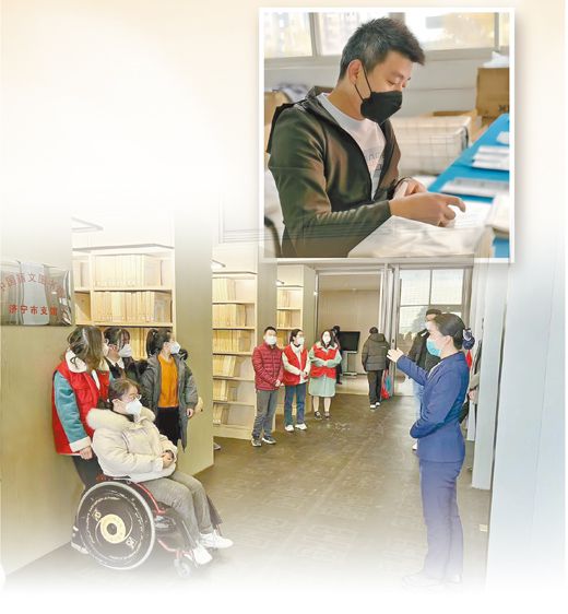 無障礙設施日益完善,信息無障礙建設也在加快推動。走進二樓借閱室,靠近門口的桌上,擺著“殘疾人閱讀專席”標簽,桌前置有6輛輪椅。尹維將下半身卡進桌下:“高度正合適?!?/p>