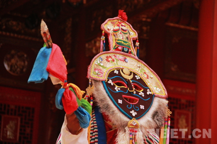 圖為拉薩市城關區(qū)娘熱民間藝術團演員多吉次仁表演國家級非物質(zhì)文化遺產(chǎn)“嘎爾”攝影:劉莉
