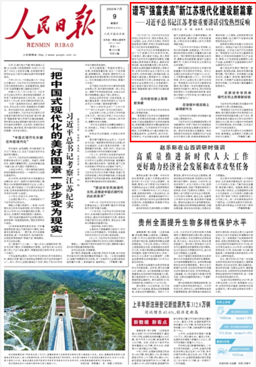 人民日報(bào)丨譜寫“強(qiáng)富美高”新江蘇現(xiàn)代化建設(shè)新篇章——習(xí)近平總書記江蘇考察重要講話引發(fā)熱烈反響