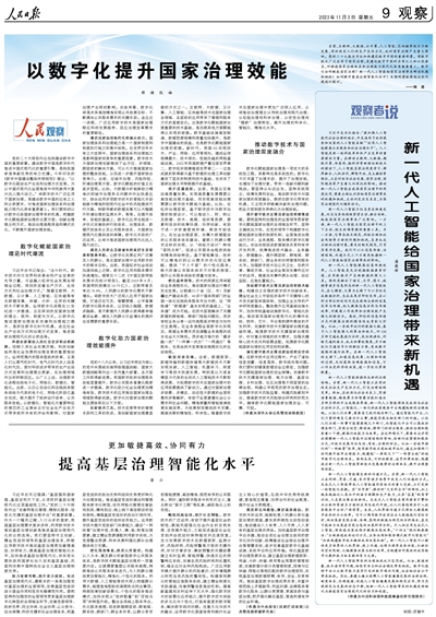 人民日?qǐng)?bào)整版探討數(shù)字化如何賦能?chē)?guó)家治理