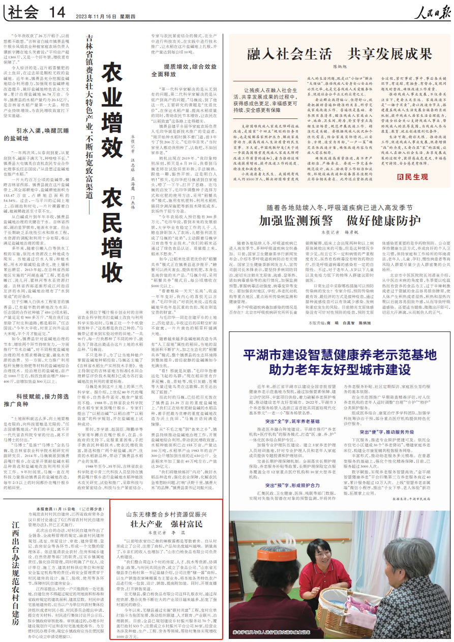 《 人民日報 》( 2023年11月16日 第 14 版)