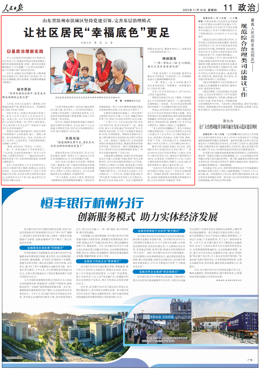 人民日報點贊濱州濱城區(qū):讓社區(qū)居民“幸福底色”更足