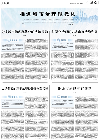城市治理體系和治理能力現(xiàn)代化是國家治理體系和治理能力現(xiàn)代化的重要內(nèi)容。習(xí)近平總書記指出:“推進(jìn)國家治理體系和治理能力現(xiàn)代化,必須抓好城市治理體系和治理能力現(xiàn)代化?!笨倳浽谏虾?疾鞎r強調(diào):“把增進(jìn)民生福祉作為城市建設(shè)和治理的出發(fā)點和落腳點”。本期觀察版圍繞如何提高城市治理法治化、科學(xué)化、精細(xì)化、智能化水平,更好推進(jìn)城市治理現(xiàn)代化、全面踐行人民城市理念進(jìn)行探討。