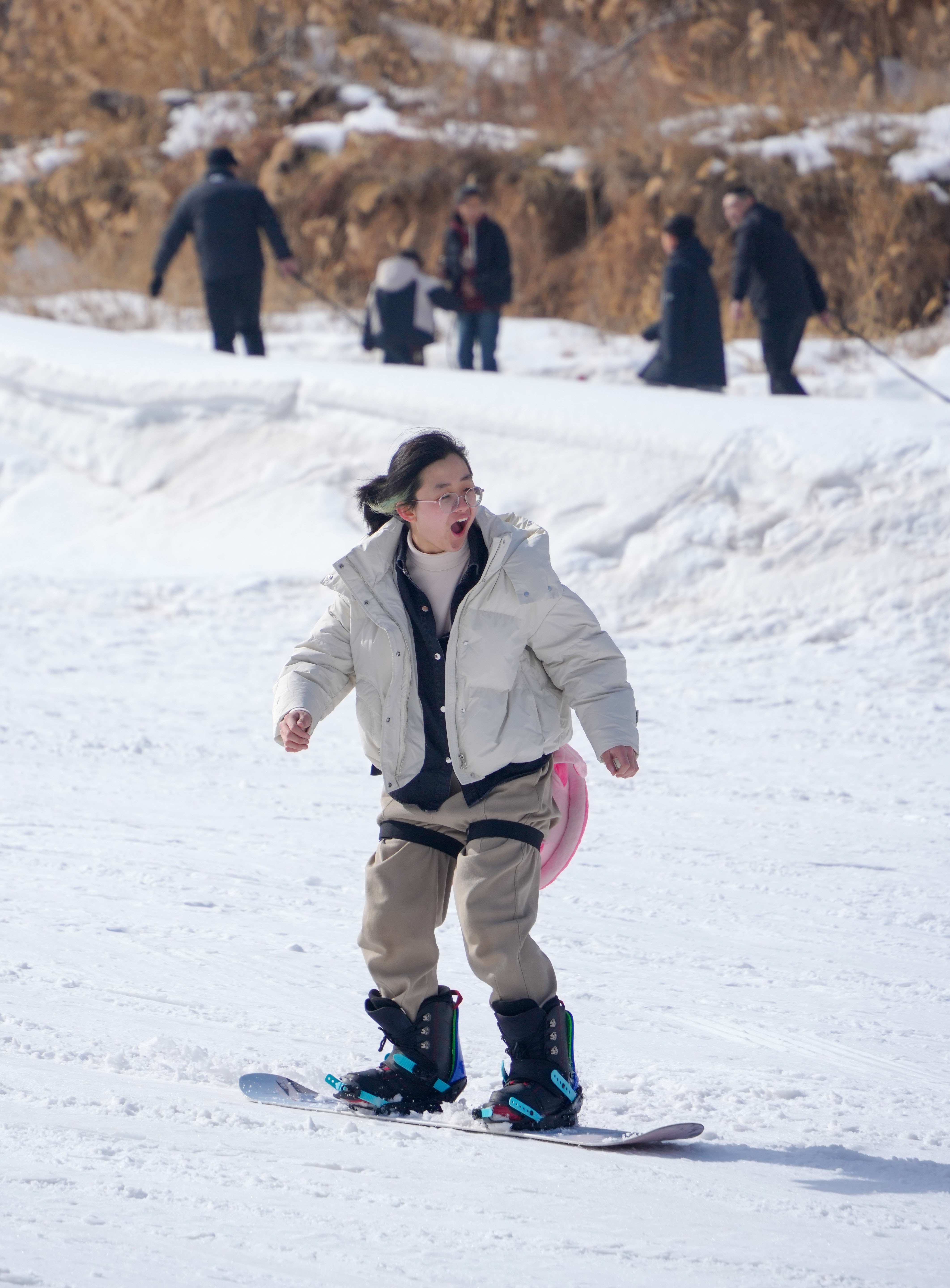 春節(jié)的‘紅’和冰雪的‘白’相遇,這是屬于中國人的獨特浪漫。2月10日(農(nóng)歷大年初一),在山西運城,萬榮孤峰山滑雪場里熱鬧非凡。父母們陪伴孩子走進(jìn)滑雪場,體驗滑雪、雪圈等項目。