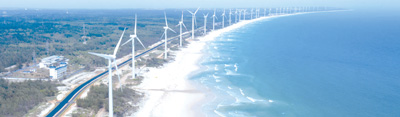 為滿足海南自貿(mào)港高質(zhì)量發(fā)展電力需求,有效推進大規(guī)模新能源電力消納,海南500千伏主網(wǎng)架工程正在抓緊建設(shè)。圖為海南省文昌市木蘭灣沿海的風力發(fā)電機。