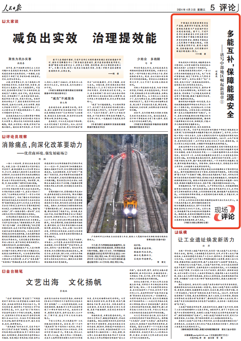 建設(shè)新型能源體系,做優(yōu)做強傳統(tǒng)能源是必要之舉。習(xí)近平總書記在新時代推動中部地區(qū)崛起座談會上強調(diào),“注重傳統(tǒng)能源與新能源多能互補、深度融合”。近年來,山西以坑口煤電一體化為重點,支持大型現(xiàn)代化煤礦和先進高效環(huán)保煤電機組同步布局建設(shè),超臨界電力機組比例持續(xù)提升。2023年,山西產(chǎn)煤增量、總量均居全國第一,全年外送電量達1576億千瓦時,再創(chuàng)新高。立足以煤為主的基本國情,必須提升傳統(tǒng)能源兜底保障能力。