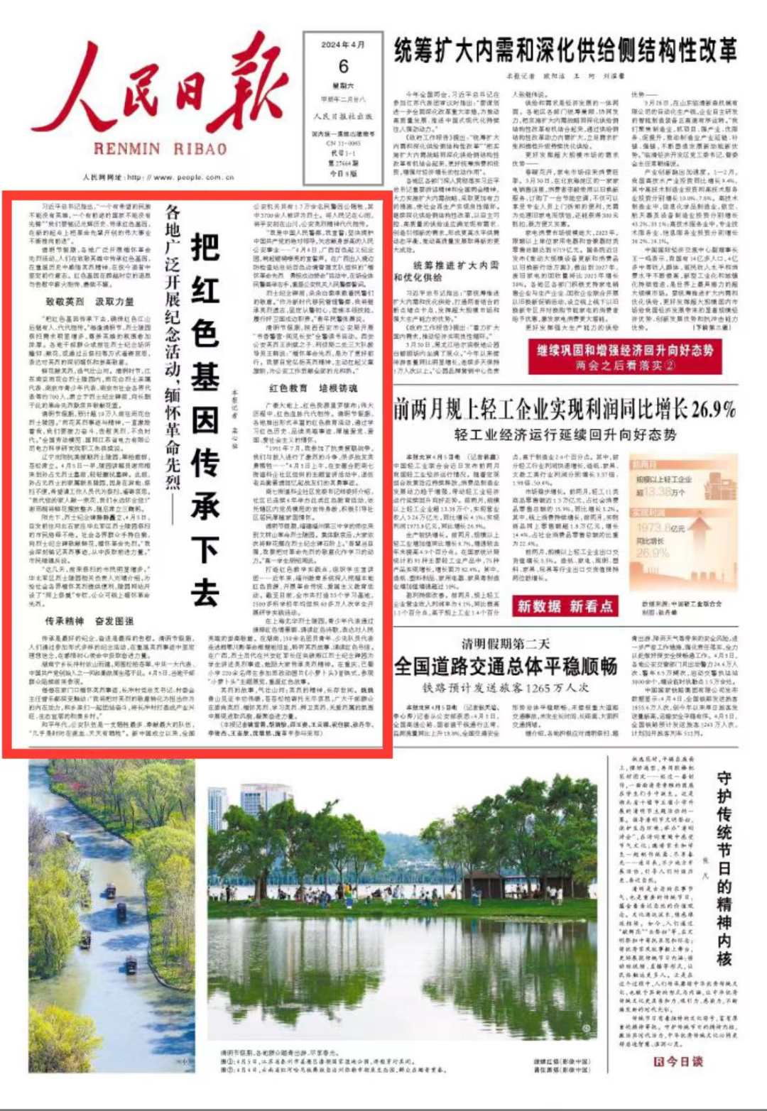 人民日報頭版頭條關(guān)注沈陽抗美援朝烈士陵園:把紅色基因傳承下去