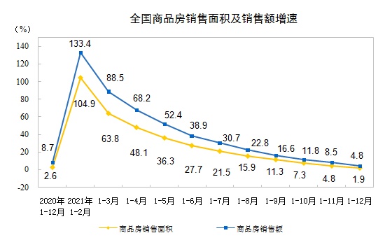 2021年商品房銷(xiāo)售面積同比增長(zhǎng)1.9%
