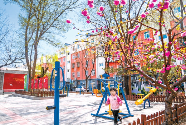 大興區(qū)興豐街道老小區(qū)黃村西里社區(qū)在居民的共同維護下,居住環(huán)境整潔舒適。圖為提升后的社區(qū)廣場上,小朋友正在樂享春光。本報記者 武亦彬攝