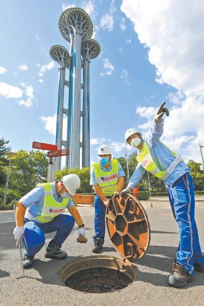 汛期到來前,北京排水集團(tuán)工作人員進(jìn)行管線清掏作業(yè)。 北京排水集團(tuán)供圖