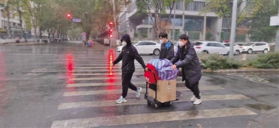 學(xué)校進(jìn)入臨時(shí)管控狀態(tài),但很多學(xué)生人在住宿區(qū)、學(xué)習(xí)物品在北校園的學(xué)習(xí)區(qū),怎么辦?該校通過接訴即辦平臺(tái)收到學(xué)生的反映后,立即作出決策,成立物品傳遞轉(zhuǎn)運(yùn)隊(duì)伍,幫助學(xué)生解決人與學(xué)習(xí)物品分離的問題,學(xué)院書記、院長(zhǎng)和師生志愿者立即行動(dòng)起來組建搬運(yùn)隊(duì)伍,有的在校內(nèi)幫忙打包學(xué)生物資,有的在校外接應(yīng)、及時(shí)將學(xué)生所需物資送到學(xué)生手里。