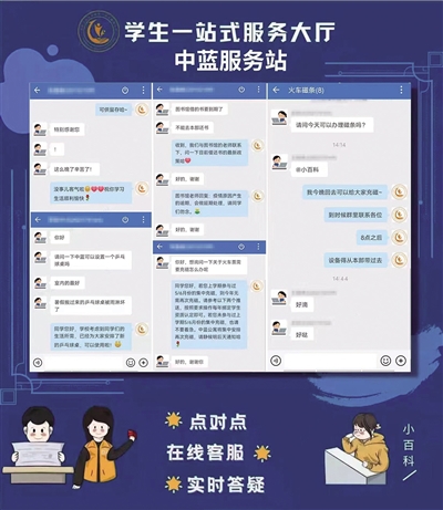 北京工業(yè)大學(xué)中藍(lán)校區(qū),線上實(shí)時(shí)問答平臺(tái),第一時(shí)間給予學(xué)生回應(yīng)。學(xué)校供圖