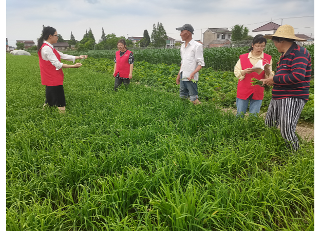 農(nóng)技志愿者在田頭宣傳韭菜無(wú)公害種植技術(shù)(央廣網(wǎng)發(fā) 通訊員供圖)
