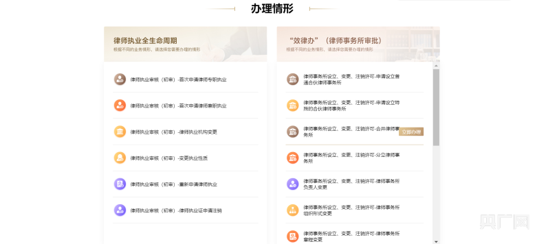 律師執(zhí)業(yè)全生命周期與“效律辦”網(wǎng)頁(yè)截圖