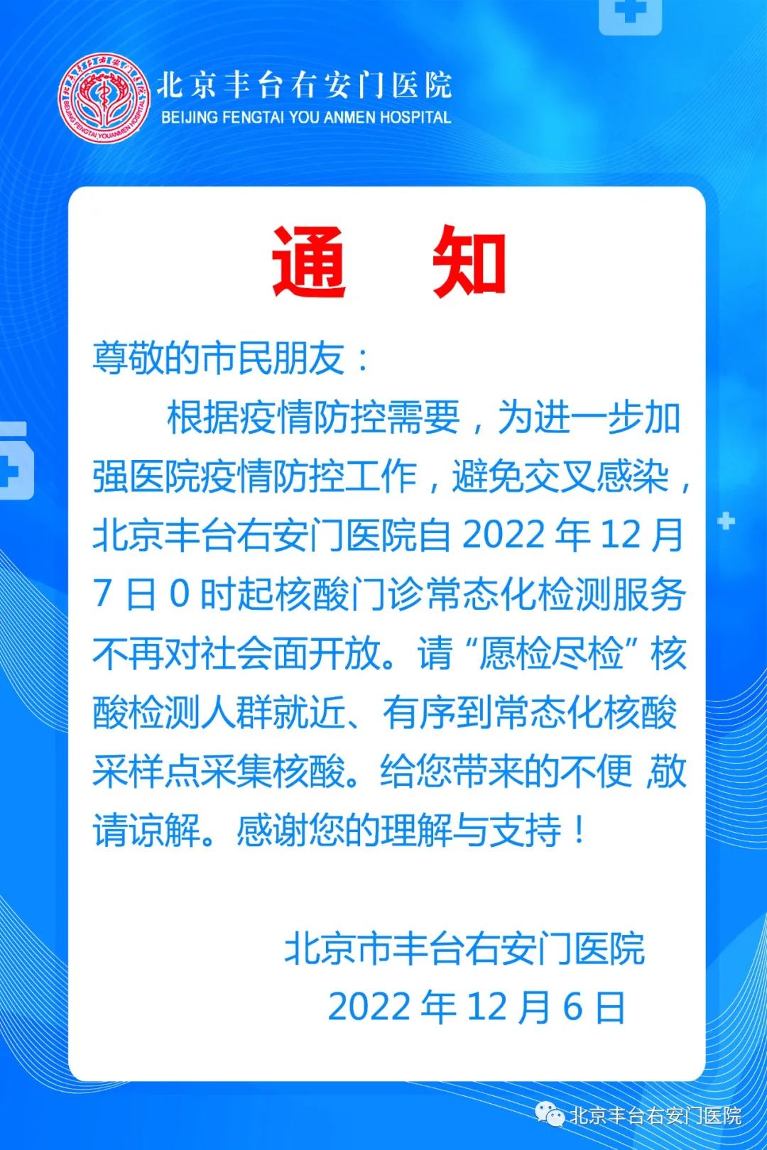北京豐臺(tái)右安門醫(yī)院核酸門診12月7日起停診