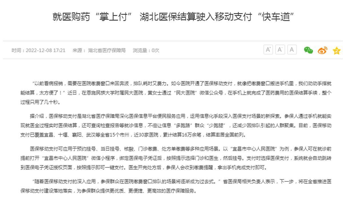 湖北醫(yī)保結(jié)算駛?cè)胍苿又Ц丁翱燔嚨馈?/h2>