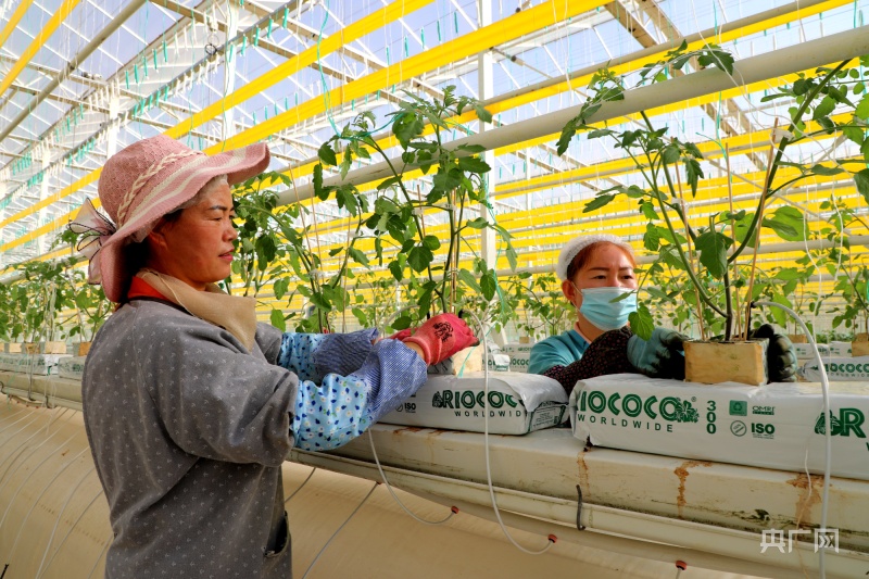 搬遷群眾在家門(mén)口的張掖海升上班(央廣網(wǎng)發(fā) 王曉涇 攝)